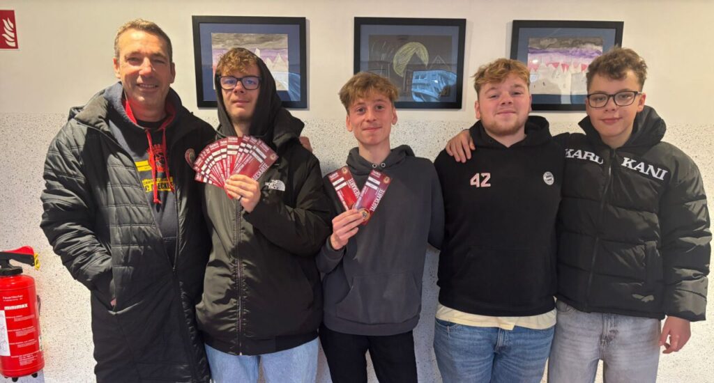 Vereinssportlehrer Alexander Klähn übergabt 15-mal freien Eintritt für ein Heimspiel der 1. Männermannschaft, als kleines Dankeschön für die Unterstützung bei dem Projekt „Kita in Bewegung“ an die Weinbergschule, die die Räumlichkeiten für die Kita AG stellt. In dieser AG möchte der FC Mecklenburg Schwerin Kindern den Spaß am Sport und an der Bewegung nahebringen. Einmal in der Woche können sich dabei Kids ab 3,5 Jahren für 60 Minuten sportlich auspowern. In zwei bis drei Sportgruppen mit lizensierten Trainern bietet der FCM den Kindern eine freudige Sportstunde an. Schwerpunkt der Sportstunde sind Spiele, die die individuell technischen Fähigkeiten mit dem Ball fördern. Dazu zählt neben dem Dribbeln und Schießen auch das Fangen und Werfen. So werden die koordinativen Fähigkeiten und die sozialen Kompetenzen geschult. Als Motivationsspritze für die Fußball-AG der 7.-10. Klassen der Weinbergschule, gab es nun die Karten. Dort wird der FCM zukünftig unterstützen und seinen Platz zur Verfügung stellen.